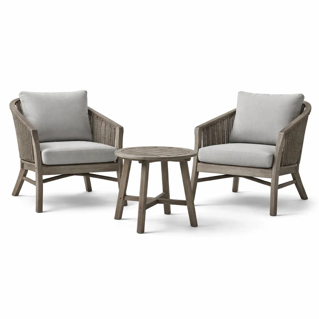 Matériau : Structure en bois d'acacia, tressage en rotin synthétique, coussins en polyester